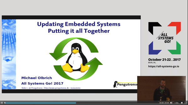 Auf der All Systems Go Konferenz in Berlin berichtete Michael Olbrich am 22.10.2017 über die Erfahrungen unseres Integration Teams, unter dem Titel "Updating Embedded Systems - Putting it all together".