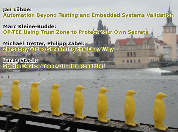 Tag 3 der Embedded Linux Conference Europe 2017 in Prag ist vorbei, wir haben alle unsere Vorträge erfolgreich hinter uns gebracht, neue Community-Kontakte geknüpft und alte erneuert. Hier ist mein Bericht.
